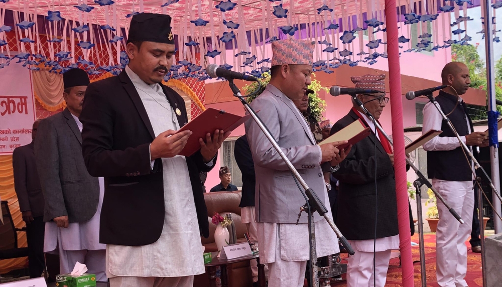 प्रदेश प्रमुख अमिक शेरचनले मुख्यमन्त्री र मन्त्रिपरिषद्का सदस्यलाई शपथ ग्रहण गराएका हुन् । पहिलो चरणमा मुख्यमन्त्री डिल्लीबहादुर चौधरीले माओवादीका धनबहादुर मास्की, लोसपाका सन्तोषकुमार पाण्डे र नागरिक उन्मुक्तिका धर्मबहादुर चौधरीलाई मन्त्रीमा नियुक्त गरेका छन् । मन्त्रीहरूको जिम्मेवारी पछि तोकिने छ ।