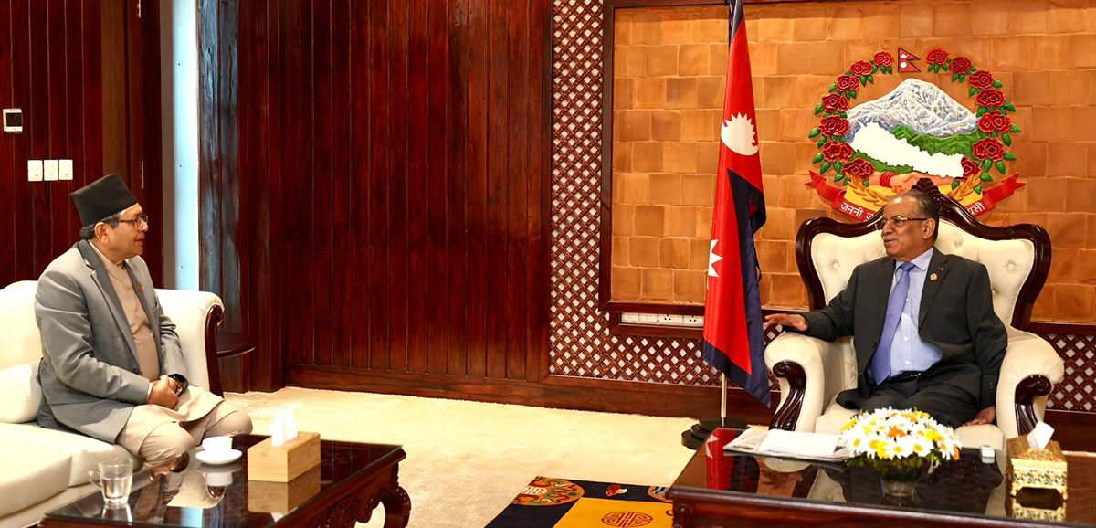 काठमाडौं, २ जेठ । प्रधानमन्त्री पुष्पकमल दाहाल प्रचण्ड र सभामुख देवराज घिमिरेबीच भेटवार्ता भएको छ। प्रधानमन्त्री प्रचण्ड भेट्न मंगलबार बिहान सभामुख घिमिरे बालुवाटार गएका थिए। भेटमा प्रधानमन्त्री प्रचण्डले जेठ ५ गते सरकारको नीति तथा कार्यक्रम ल्याउने तयारी भएको सभामुखलाई जानकारी गराएका थिए।