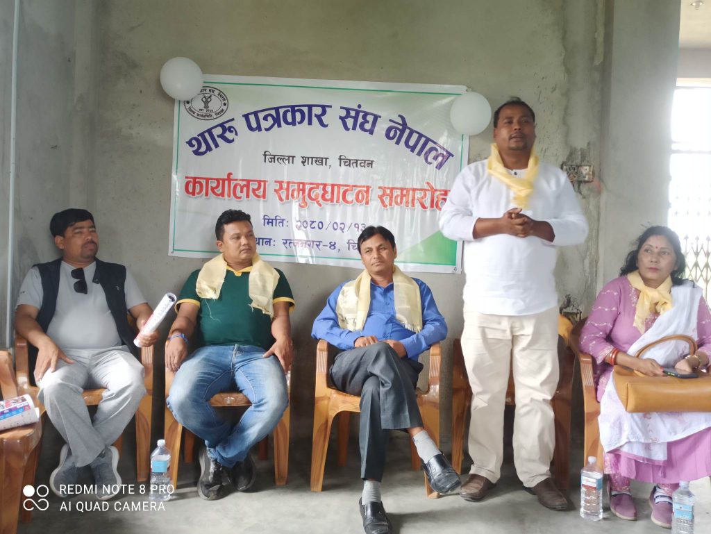 रत्ननगर, १३ जेठ । थारु पत्रकार संघ चितवन शाखाले पूर्वी चितवनको रत्ननगरमा कार्यालय स्थापना गरेको छ । रत्ननगर नगरपालिकाको वडा नं. ४ स्थित थारु कल्याणकारिणी सभा क्षेत्र नं. ८ को भवनमा कार्यालय स्थापना गरिएको हो । कार्यालयको आजै वडा नं. ४ का वडा अध्यक्ष रामकुमार चौधरीले उद्घाटन गरे । उद्घाटन कार्यक्रममा बोल्दै वडा अध्यक्ष चौधरीले वडासँगै यो क्षेत्रको विकासमा थारु पत्रकारसँग हातेमालो गरेर अगाडी बढ्ने बताए ।