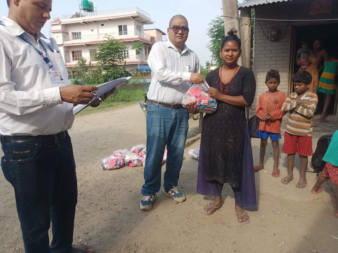 रत्ननगर, २२ जेठ । विश्व वातावरण दिवसको अवसरमा रत्ननगर नगरपालिका वडा नं. ७ ले वडा भित्रका ४९ माझी मुसहर घरपरिवारलाई सरसफाईका सामग्री वितरण गरिएको छ । वडा अध्यक्ष सजना महतोको नेतृत्वमा गएको टोलीले भाँडा माझ्ने साबुनदेखि दाँत माझ्ने ब्रस मन्जन लगायतका सामग्री वितरण गरिएको वडा सदस्य सूर्यवहादुर तामाङले जानकारी दिए ।