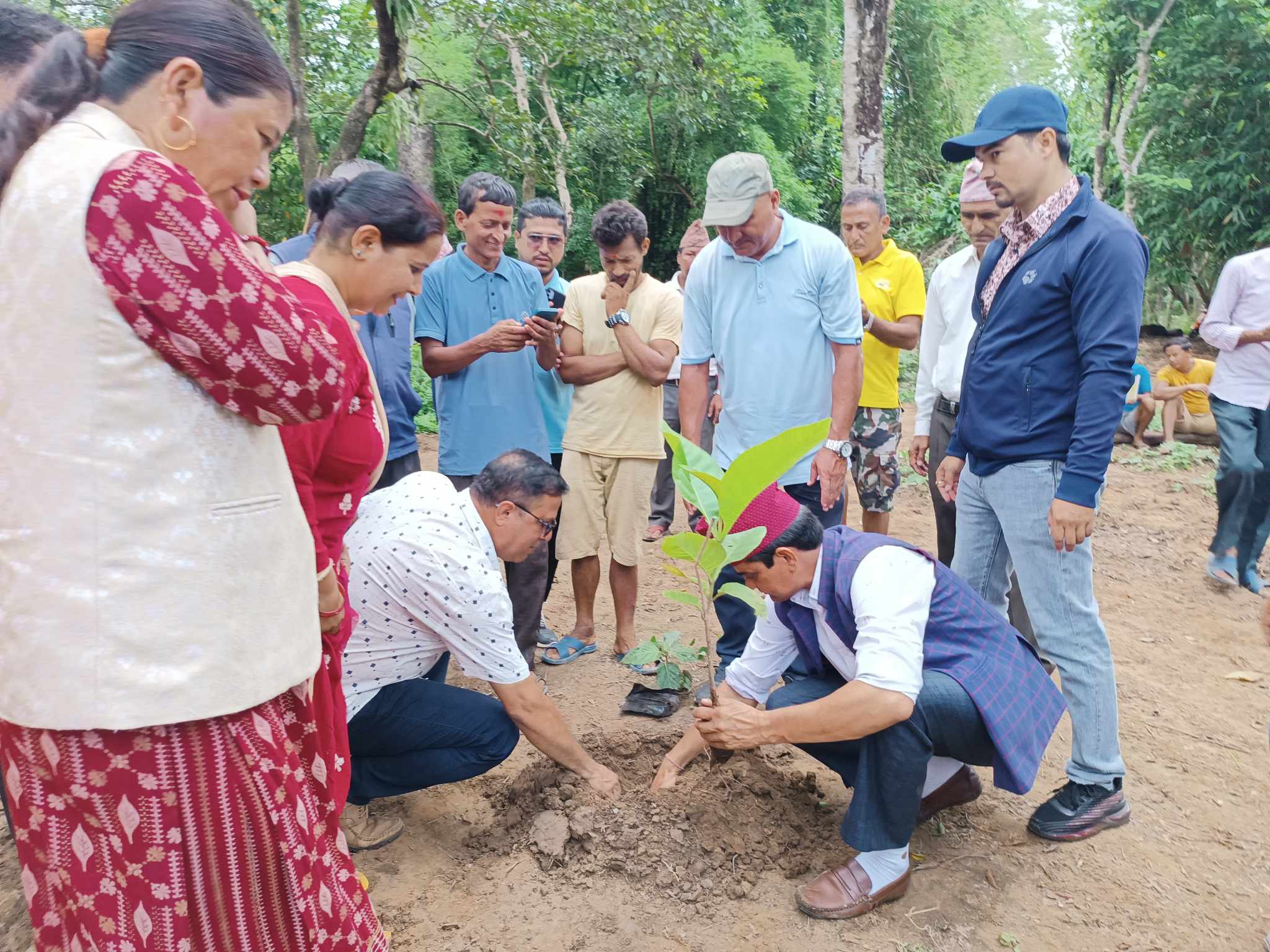 डिभिजन वन कार्यालयका वालकृष्ण खनालका अनुसार १ सय १० वटा विरुवा आज रोपिएको छ । सामुदायिक वनको यो क्षेत्रमा ५ हेक्टर क्षेत्रफलमा २ हजार विरुवा रोप्ने लक्ष्य छ । टिक, बडर, तेजपात, गुलाफ जामुन लगायतका विरुवा रोपिएको छ । काठको विकल्पको रुपमा टिकलाई विशेष जोड दिइएको छ ।