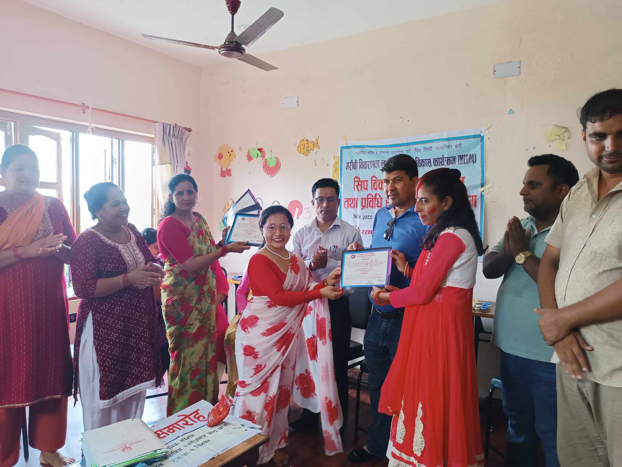 सो अबसरमा प्रमुख प्रशासकीय अधिकृत सुवेदीले सीप विकास मार्फत विपन्न समुदायका महिलाहरुको जीवन स्तर उकास्न तालिम आयोजना गरिएको बताए । वडाध्यक्ष खरेलले आफुले सीकेको सीपलाई आर्थिक उपार्जनको माध्यम बनाउन आग्रह गरे ।