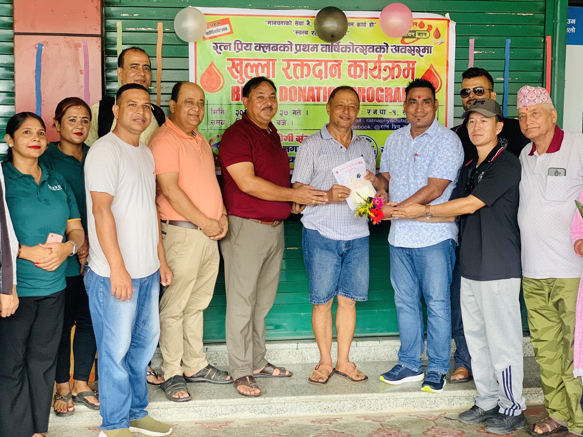 रत्ननगर,२७ साउन । रत्ननगर-९ मा रहेको रत्न प्रिय क्लवको प्रथम वार्षिक उत्सवको अवसरमा शनिवार रक्तदान कार्यक्रम सम्पन्न भएको छ ।