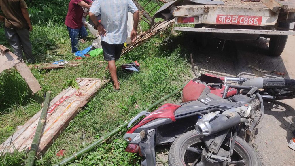 शव बोकेको गाडी, कलेज बस, मोटरसाइकल र स्कुटर आपसमा ठोक्किए