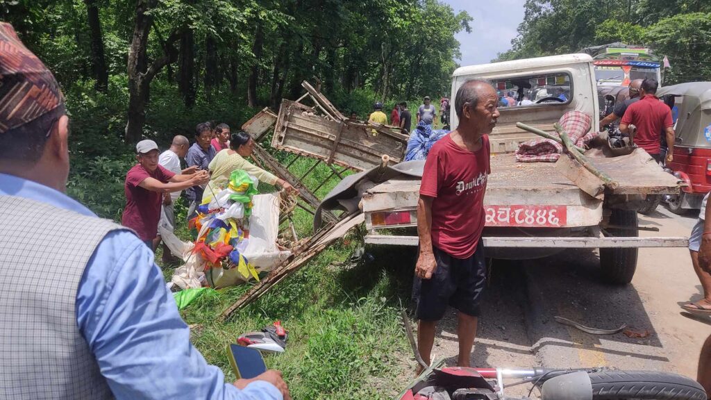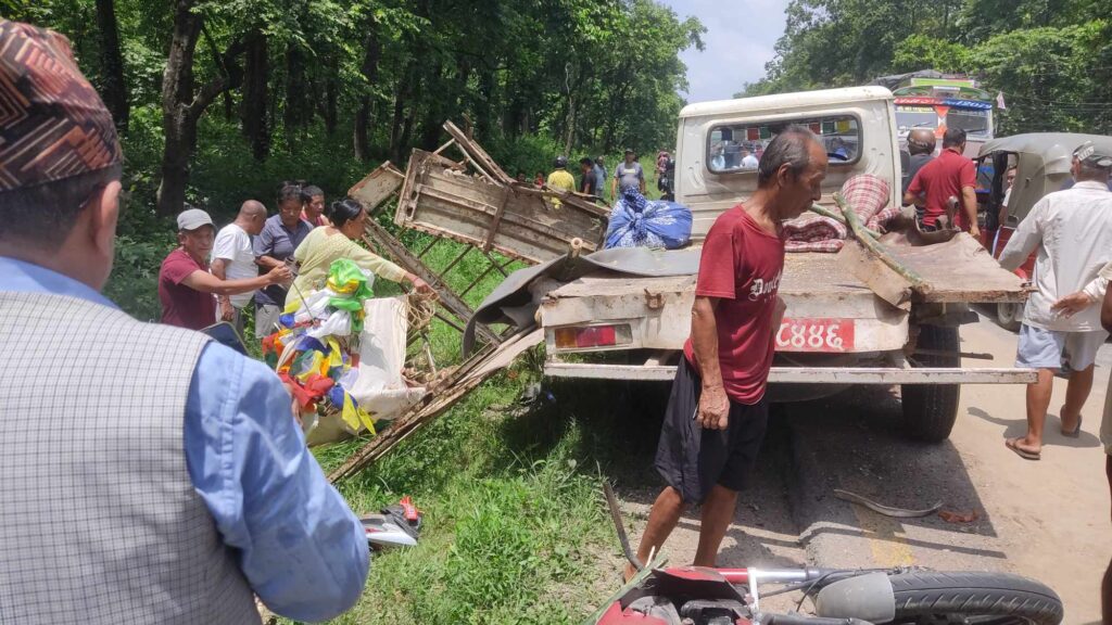 रत्ननगर,३१ साउन । टिकौली जंगलमा चार वटा सवारी साधन आपसमा ठोक्किएका छन् ।