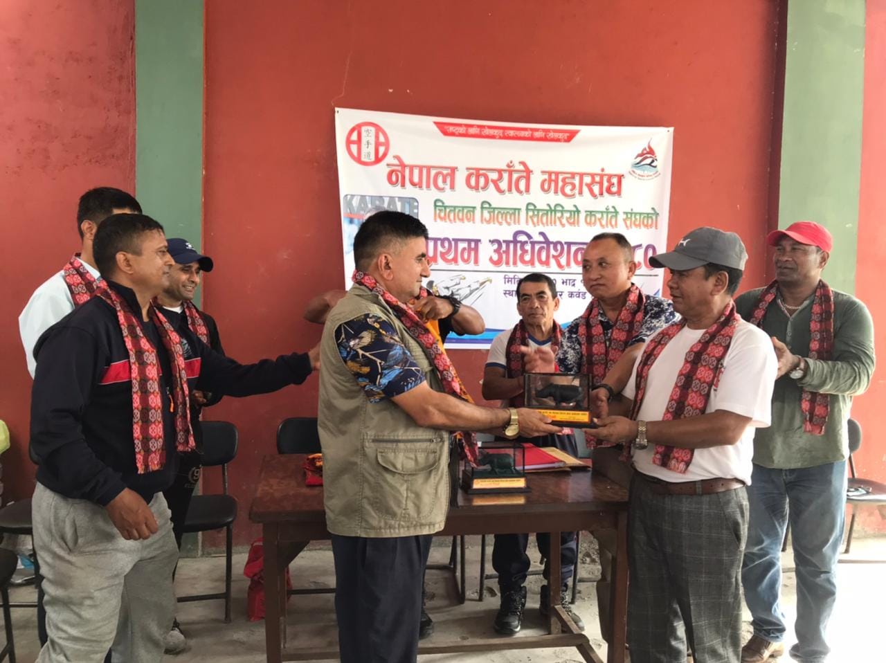 नेपाल सितोरियो कराँते सङ्घका केन्द्रीय सदस्य तीर्थराज श्रेष्ठको अध्यक्षतामा भएको प्रथम अधिवेशनमा चितवन जिल्ला खेलकुद विकास समितिका अध्यक्ष उत्तम गुरूङ, कार्यालय प्रमुख रामजी ढकाल, भरतपुर महानगर खेलकुद विकास समितिका संयोजक विकास श्रेष्ठ, चितवन सितोरियो कराँतेका संस्थापक गुरूहरू सुधीर श्रेष्ठ, अमर श्रेष्ठ, राष्ट्रिय खेलकुद परिषद्का कराँते प्रशिक्षक टार्जन श्रेष्ठले नव निर्वाचित सम्पूर्ण पदाधिकारीलाई बधाई तथा कर्यकाल सफलताको शुभकामना दिनुभएको थियो ।