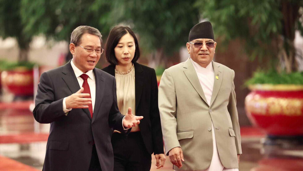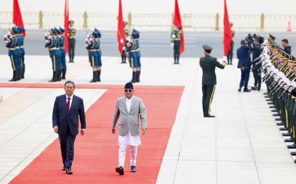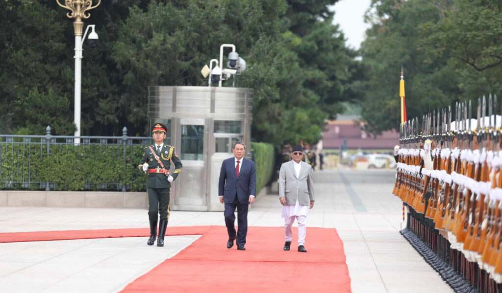 काठमाण्डौं, ८ असोज । प्रधानमन्त्री पुष्पकमल दाहाल ‘प्रचण्ड’लाई चीनले ‘गार्ड अफ अनर’प्रदान गरेको छ। चीनको औपचारिक भ्रमणमा रहेका प्रधानमन्त्री प्रचण्डलाई सोमबार बिहान चिनियाँ जनमुक्ति सेनाले तोपको सलामीसहित गार्ड अफ अनर प्रदान गरेको हो। उक्त कार्यक्रममा प्रधानमन्त्री प्रचण्डका चिनियाँ समकक्षी प्रधानमन्त्री ली छ्याङ पनि सहभागी थिए। उक्त कार्यक्रमपश्चात नेपाल र चीनबीच द्विपक्षीय वार्ता सुरु भएको छ। प्रधानमन्त्री प्रचण्डको नेतृत्वमा नेपाली प्रतिनिधिमण्डल र चिनियाँ प्रधानमन्त्री लीको नेतृत्वमा रहेको प्रतिनिधिमण्डलबीच छलफल भएको हो।