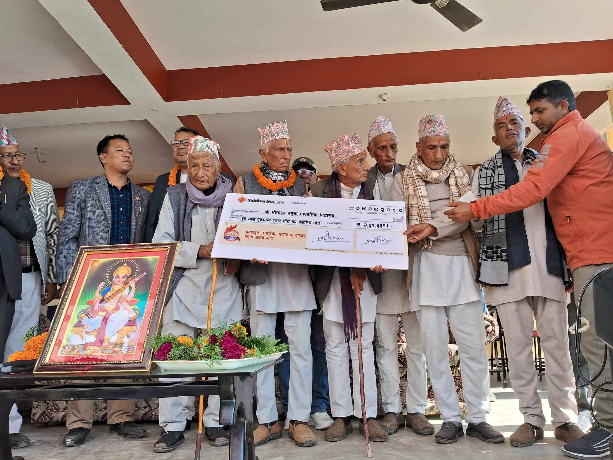 छोराहरुले आफ्नो स्वर्गीय बुबाआमाहरुको स्मृतीमा प्रयागदत्त, धर्मादेवी, माहामाया दाहाल स्मृती अक्षय कोष स्थापना गरेका हुन । चौथों दिन विद्यालयमा आयोजना गरिएको एक विशेष कार्यक्रमका बीच अक्षय कोष बराबरको चेक विद्यालय व्यवस्थापन समितिका अध्यक्ष अमृत श्रेष्ठ, प्रधानाध्यापक इन्द्रनाथ पौडेललाई हस्तान्तरण गरिएको थियो ।