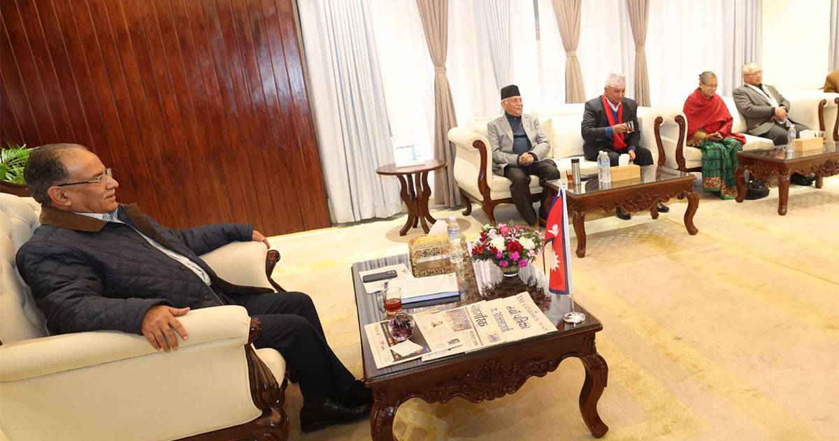 काठमाडौं, ९ माघ । प्रधानमन्त्री पुष्पकमल दाहाल ‘प्रचण्ड’ले एमालेले प्रस्तुत गरेको ध्यानाकर्षणले नेपाल सरकारको नीति तथा कार्यक्रम र बजेट निर्माणमा महत्वपूर्ण योगदान पुग्ने बताएका छन्। मंगलबार बिहान अध्यक्ष केपी शर्मा ओलीको नेतृत्वमा एमालेको टोली बालुवाटारमा पुगेर मध्यपहाडका स्थानीय बासिन्दाले राखेका समस्यालाई लिखित रुपमा दिएको पत्र बुझ्दै प्रधानमन्त्री प्रचण्डले सरकार गम्भीर रूपमा लिने बताएका हुन्।