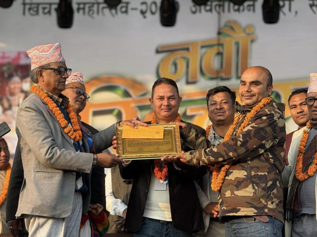 खैरहनीमा आयोजना गरिएको नवौं खिचरा महोत्सव २०८० को समापनको अबसर पारेर जननिकास डटकमका सञ्चालक दिलीप डल्लाकोट र थारुवान डटकमका चितवन संवाददाता कारी महतोलाई नगद पुरस्कार सहित सम्मान गरिएको हो ।