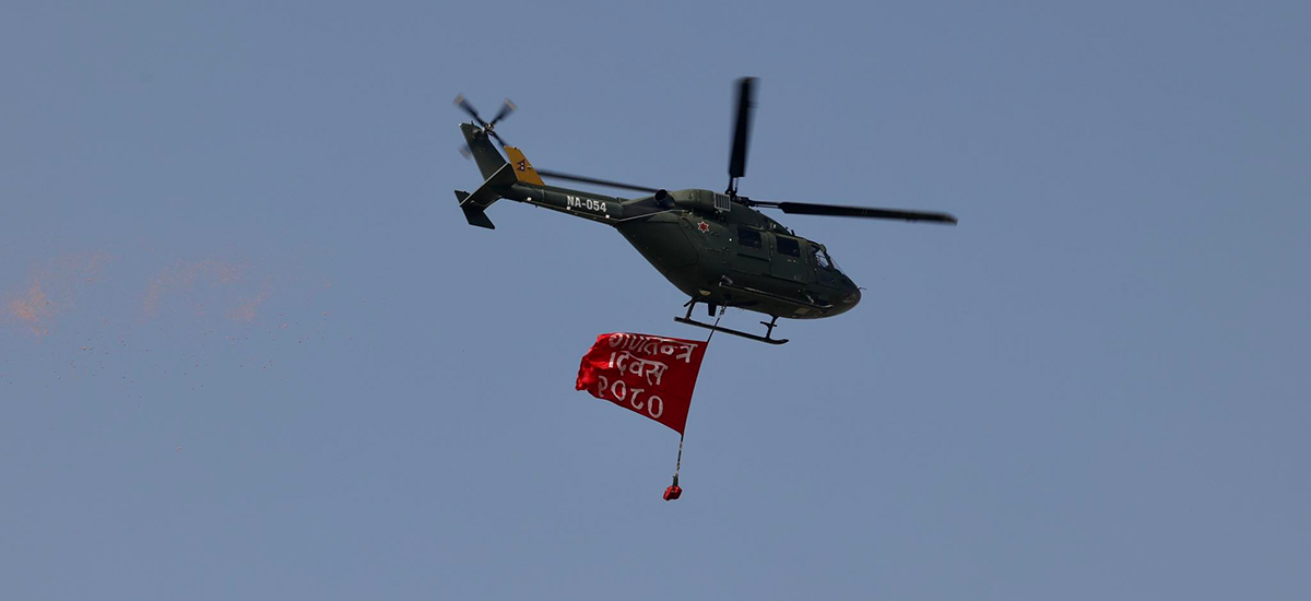 सेनाको हेलिकोप्टरबाट ‘राष्ट्रिय प्रजातन्त्र दिवस, २०८०’ अंकित व्यानर चक्रपथ वरपर प्रदर्शन गर्ने तथा नेपाली सैनिक मञ्च, टुँडिखेलमा हेलिकोप्टरबाट पुष्पवृष्टि र झण्डा प्रदर्शन गर्ने कार्यक्रम पनि तय भएको छ । दिवसको दिन फागुन ७ गते नेपाली सेनाबाट सैनिक मञ्च, टुँडिखेलमा बिहान सूर्योदयसँगै विगुल बजाएको थियो भने तोप र बन्दुकको बढाईंको कार्यक्रम पनि राखिएको छ ।