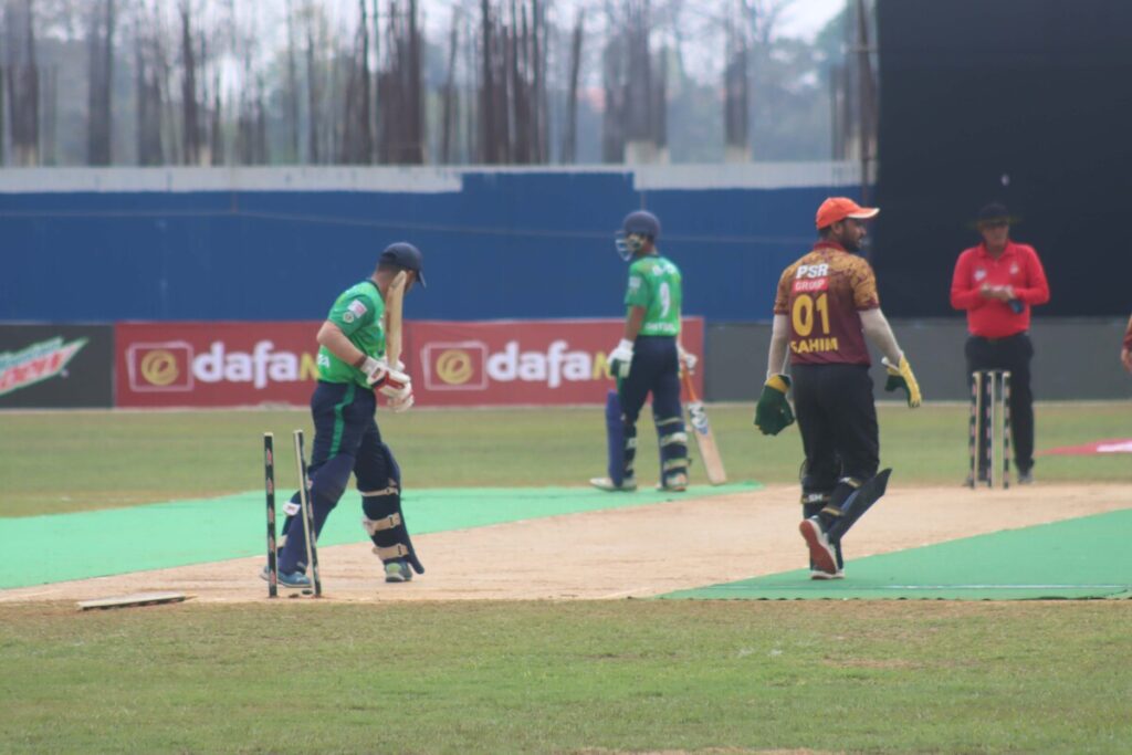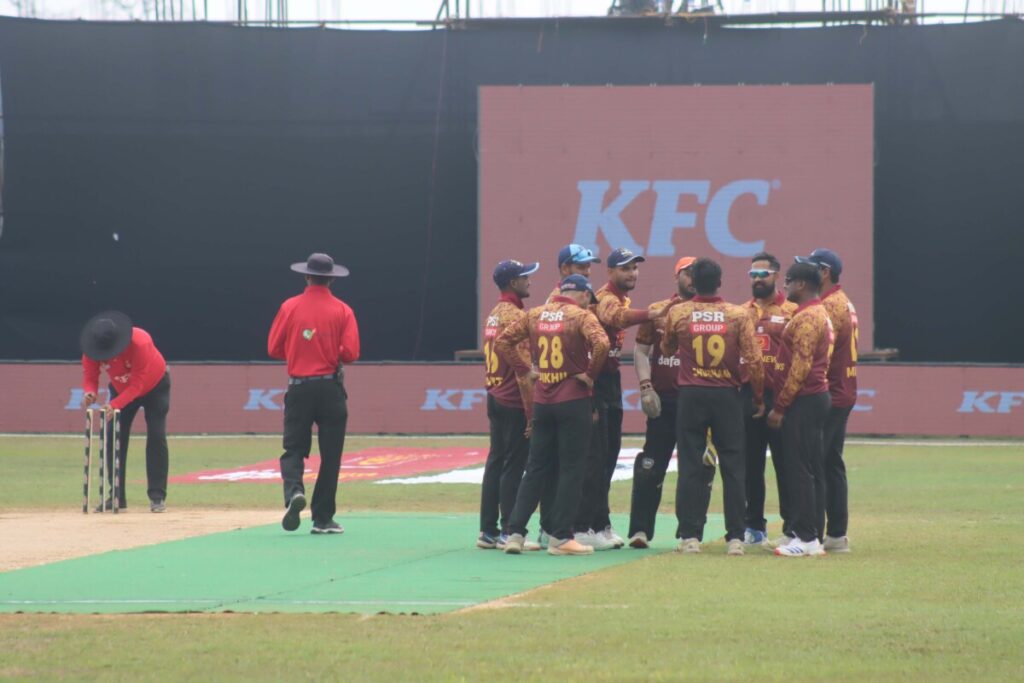 भरतपुरका लागि नयन प्रधानले ५ विकेट लिए । उनले ४ ओभरमा मात्र २६ रन खर्चिएका थिए भने १३ डट बल फालेका थिए । उनी एकै खेलमा ह्याट्रिकसहित ५ विकेट लिने पहिलो खेलाडी बनेका छन् । कप्तान दिपेश श्रेष्ठले ४ ओभरमा ४८ रन खर्चिदै २ विकेट लिए भने गौतम केसी र सौगात ढकालले समान एक विकेट लिए । यसैबीच आज भएको दोस्रो खेलमा सुदूरपश्चिम प्रदेशले मधेश प्रदेशलाई ४७ रनले पराजित ग¥यो । सुदूरपश्चिम प्रदेशले लिएको दिएको १८४ रनको लक्ष्य पछ्याएको मधेश ९ विकेटको क्षतिमा १३६ रन मात्रै बनाउन सक्यो । मधेशका लागि ओपनर साहिल पटेलले सर्वाधिक २५ रन बनाए । २० बल खेलेका साहिलले ३ चौका प्रहार गरे । निरज यादवले २४ र रोशन वि.क.ले २३ रन बनाए । अन्य ब्याटरले राम्रो प्रदर्शन गर्न नसक्दा मेधश पराजित हुन पुग्यो ।
