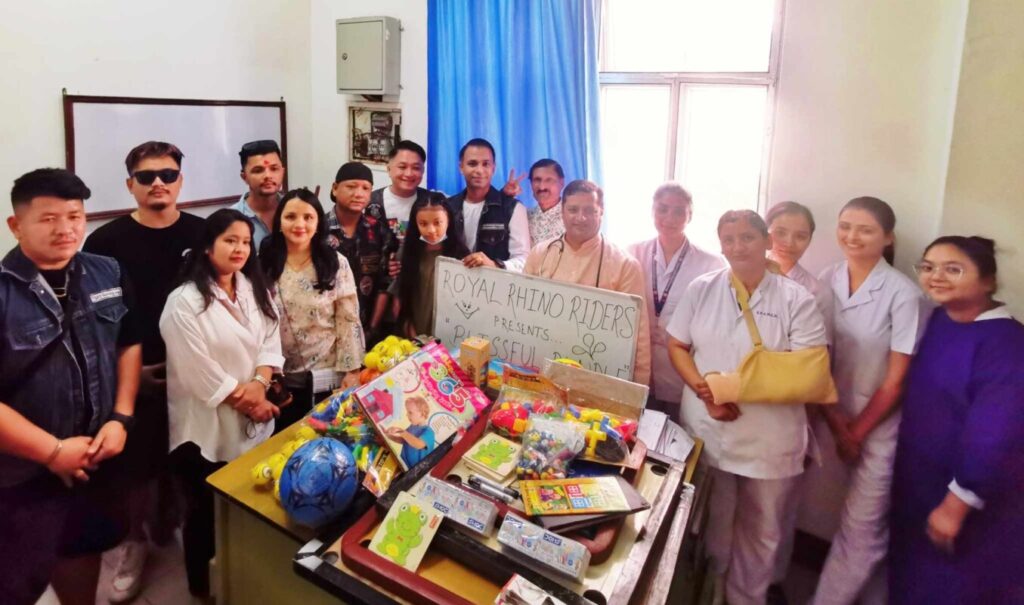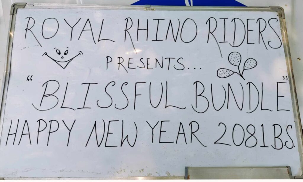 नयाँ बर्ष २०८१ को अवसरमा ब्लिसफुल बन्डल कार्यक्रम आयोजना गरी बीपी कोइराला मेमोरियल क्यान्सर अस्पतालको बाल क्यान्सर रोग विभागमा क्यान्सर पीडित बालबालिकाहरुको मानसिक र शारीरिक विकासमा टेवा पुर्याउने लक्ष्यले स्टेसनरी, खेलकुद तथा मनोरञजनात्मक सामाग्री बितरण गर्दै उनीहरूको कठिन पल हरुमा केही खुशी भर्ने सानो प्रयास गरेका छौँ “, उहाँले भन्नुभयो । कार्यक्रममा रोयल राइनो राइडर्सका अध्यक्ष राइनो प्रितम श्रेष्ठले स्टेसनरी, खेलकुद तथा मनोरञजनात्मक सामाग्रीहरु अस्पतालका बाल क्यान्सर रोग विभागिय प्रमुख तथा बाल क्यान्सर रोग विषेशज्ञ डा. कृष्ण सागर शर्मालाई हस्तान्तरण गर्दै यस्ता कार्यक्रमहरुलाई क्लबले भविष्यमा पनि निरन्तरता दिने र बाल क्यान्सर रोग पीडित बालबालिकाहरुलाई सहयोग गर्ने थप अन्य कार्यक्रमहरु पनि आयोजना गर्ने बताउनु भयो र शिवशक्ति बालमैत्रि शैक्षिक सामाग्री बिक्री केन्द्र र दिलमाया पुस्तक पसलले पनि हामीलाई सामाग्री जुटाउन सहयोग र सहज गरिदिनु भएको धन्यवाद ज्ञापन गर्नु भएको थियो।