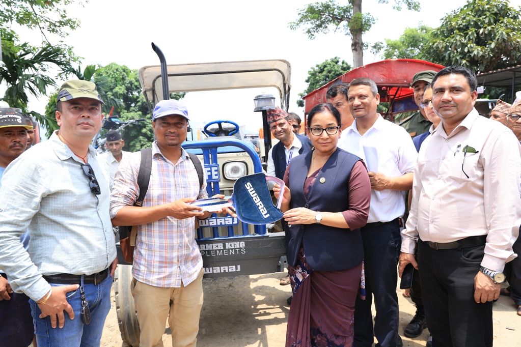 चितवन, असार २५ । भरतपुर महानगरपालिकाले कृषि समूह, फर्म तथा सहकारीलाई ६६ थान कृषि उपकरण वितरण गरेको छ । मंगलबार एक कार्यक्रमका बीच भरतपुर महानगर प्रमुख रेनु दाहाल, उप–प्रमुख चित्रसेन अधिकारी तथा प्रमुख प्रशासकीय अधिकृत लक्ष्मीप्रसाद पौडेलले कृषकलाई उपकरणका चाबी हस्तान्तरण गर्नुभयो ।