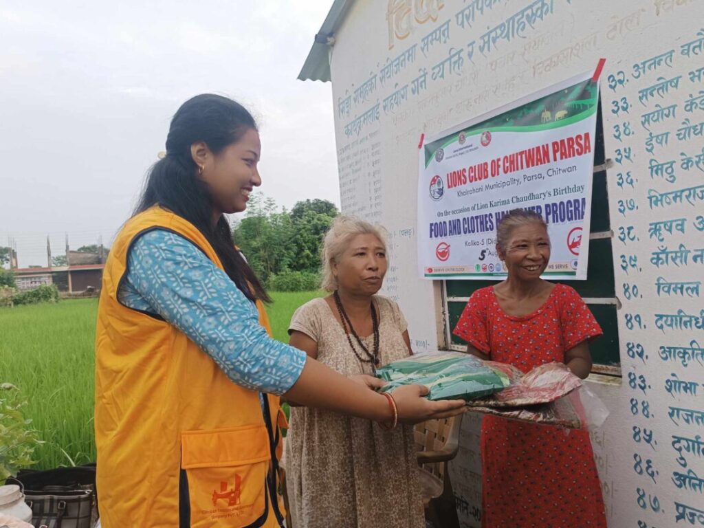 अहिले मुरलीप्रसाद गजुरेल केही समयका लागि नेपाल बाहिर जानुभएकोले यी दिदीबहिनीहरूको भान्सामा अन्नपात सकिएको समयमा लायन्स क्लब अफ चितवन पर्साले एक कार्यक्रम आयोजना गरेर आफ्नो क्रियाशील सदस्य करिमा चौधरीको जन्मदिनको अवसरमा खाद्यन्न सामग्री वितरण गरेको हो।