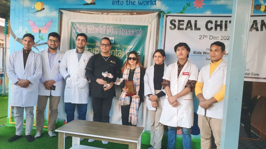 चितवन, १३ पौष । रोग लागेर उपचार गर्नुभन्दा समयमै रोकथाम गर्नुपर्छ भन्ने उद्देश्यले साईराम डेन्टल केयर डाक्टर अजय डाक्टर सरु फाउन्डेसन को प्राविधिक सहयोग र किड्स वर्ल्ड मन्टेश्वरी आयोजनामा सिल चितवनको शुभारम्भ भएको छ।