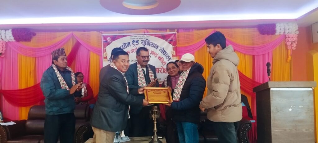 समग्र उद्योग ट्रेड युनियन नेपाल वोटलर्स नेपाल तराई लिमिटेड इकाई कमिटिका रहेर विशेष योगदान पु¥याउनु भएका यज्ञ प्रसाद सापकोटा, अनिल गुरुङ र टंकराज पौडेललाई सम्मानपत्र सहित सम्मान गरेको थियो ।