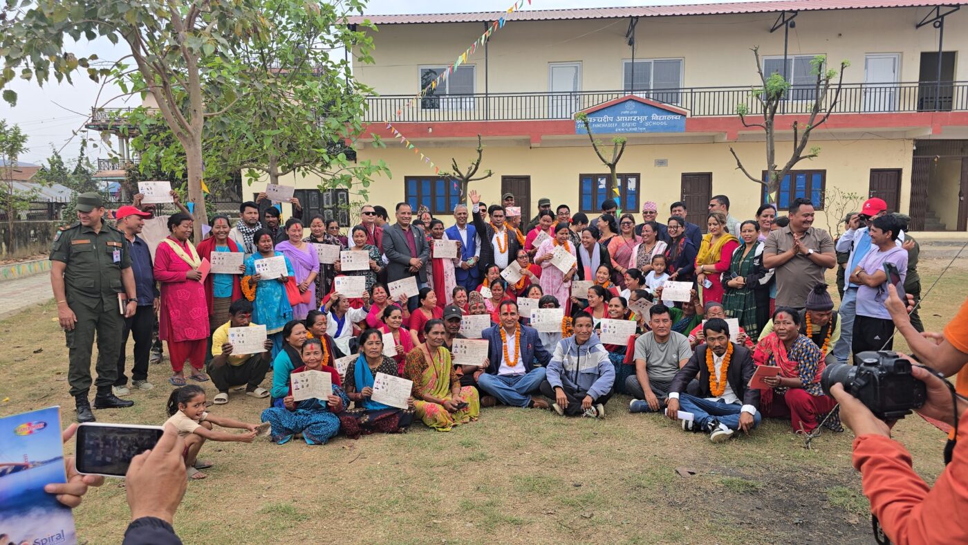 चितवन, ३ चैत्र । भूमि समस्या समाधान आयोगले भूमिहीन सुकुम्बासीलाई जग्गाधनी प्रमाण पुर्जा वितरणा सुरु गरेको छ । पूर्वी चितवनको रत्ननगर नगरपालिकाबाट पुर्जा वितरणा सुरु गरेको हो । आयोग बनेपछि पहिलोपटक पुर्जा वितरण गरिएको जनाइएको छ ।