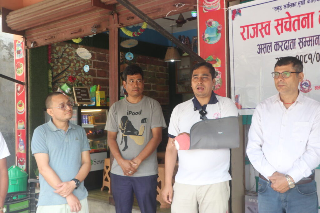 नगरपालिकाले राजस्व तिर्ने संस्कार विकास गर्न बजार क्षेत्रमै स्टिकर टाँस्ने कार्यक्रमलाई तीव्र बनाएको छ। आज कालिका वडा नं। ४ स्थित पदमपुरको हाइस्कुल बजार क्षेत्रका पसलहरूमा पुगेर राजस्वसम्बन्धी जानकारीसहित स्टिकर टाँसिएको छ। उपप्रमुख तथा अनुमन समिति संयोजक विमला तामाङको नेतृत्वमा गएको टोलीले स्थानीय व्यवसायीहरूसँग संवाद गरेको थियो। कार्यक्रममा वडा अध्यक्ष मकरमान श्रेष्ठको अध्यक्षतामा प्रमुख प्रशासकीय अधिकृत चौलागाई, लेखा अधिकृत कडुवाल, कार्यपालिका सदस्यहरू, बजार व्यवस्थापन समिति र नगरकर्मचारीहरूको उपस्थिति रहेको थियो।
