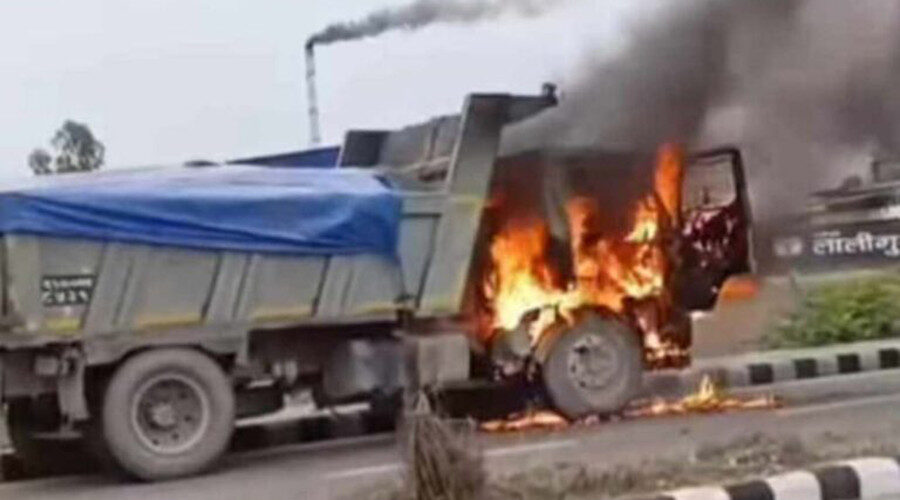 विराटनगरमा गुडिरहेको टिपरमा आगलागी