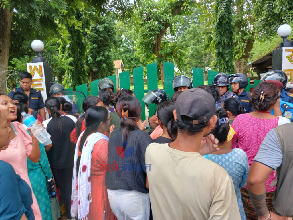 उक्त बैठक चलिरहेका बेला आक्रोशित स्थानीय बासिन्दाले सेनाको कुटपिटको विरोधमा सौराहास्थित श्री नयाँ गोरख गण (क) गुल्म अगाडि प्रदर्शन गरेका थिए। उनीहरूले कानुनबमोजिम कारबाही गर्नुको सट्टा कुटपिट गरी गम्भीर घाइते बनाइएको भन्दै विरोध जनाएका थिए।
