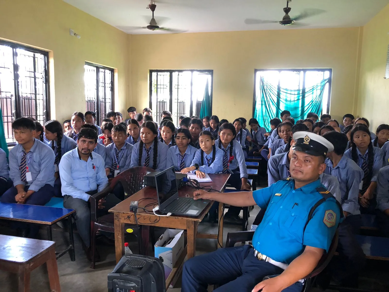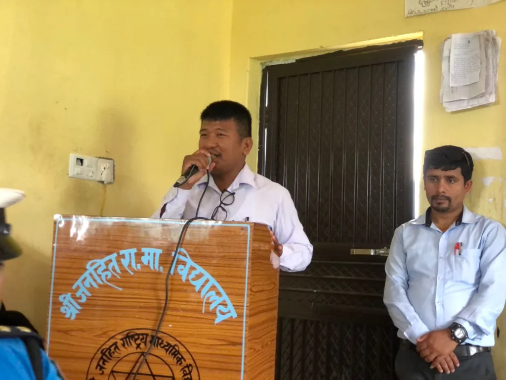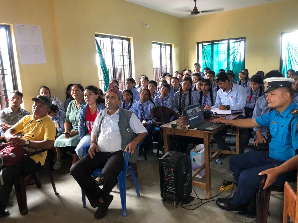 ट्राफिक प्रहरी नायब निरीक्षक सुरेन्द्र प्रसाद कोइरालाले सडक दुर्घटनाको अवस्था, दुर्घटनाबाट हुने मानवीय तथा भौतिक क्षति, ट्राफिक नियम र संकेतहरूको महत्वबारे विद्यार्थीसँग संवाद गरेका थिए।