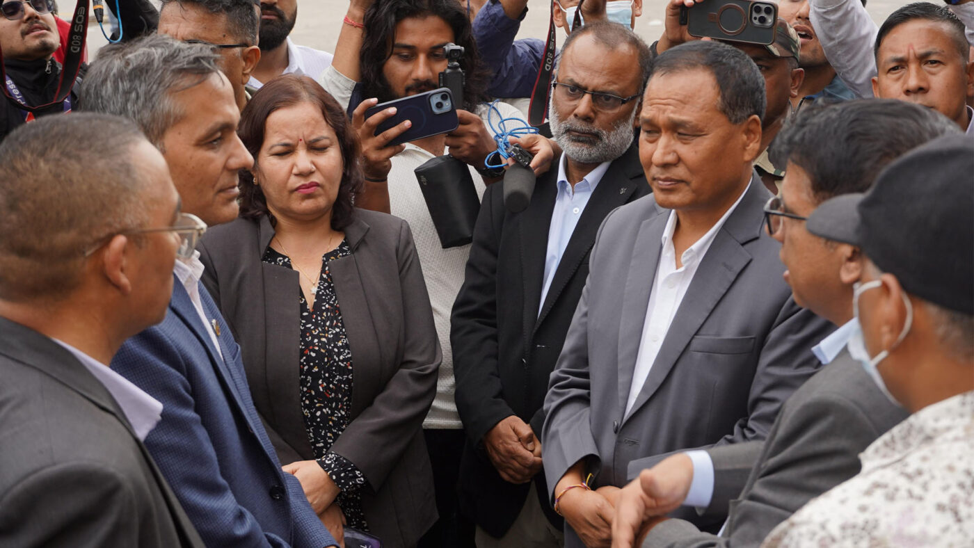 घिसिङसँगै अर्थमन्त्री रामेश्वर खनाल, गृह तथा कानुनमन्त्री ओमप्रकाश अर्यालले पनि भवनको निरिक्षण गरेका थिए । गत भदौ २३ र २४ गते काठमाडौँसहित देशभर भएको जेनजी आन्दोलनका क्रममा प्रदर्शनकारीले संसद भवनमा आगजनी गरेका थिए । आगलागीका कारण भवन पूर्णरूपमा जलेर ध्वस्त भएको छ ।
