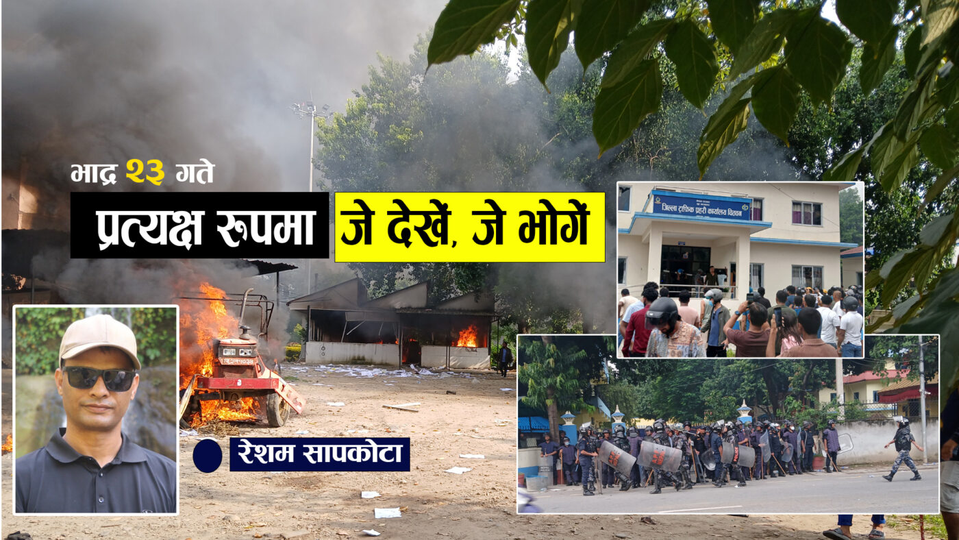 नारायणघाटको कमलनगर क्षेत्रमा नेपाली कांग्रेस जिल्ला पार्टी कार्यालयमा तोडफोड, आगजनी, र भीडको आक्रोश देखेर स्तब्ध भएँ। फोटो र भिडियो खिच्दै गर्दा फोन आयो — टाँडीतिर प्रदर्शन चर्किएको छ, नेताहरूको घरमा तोडफोड भइरहेको छ।