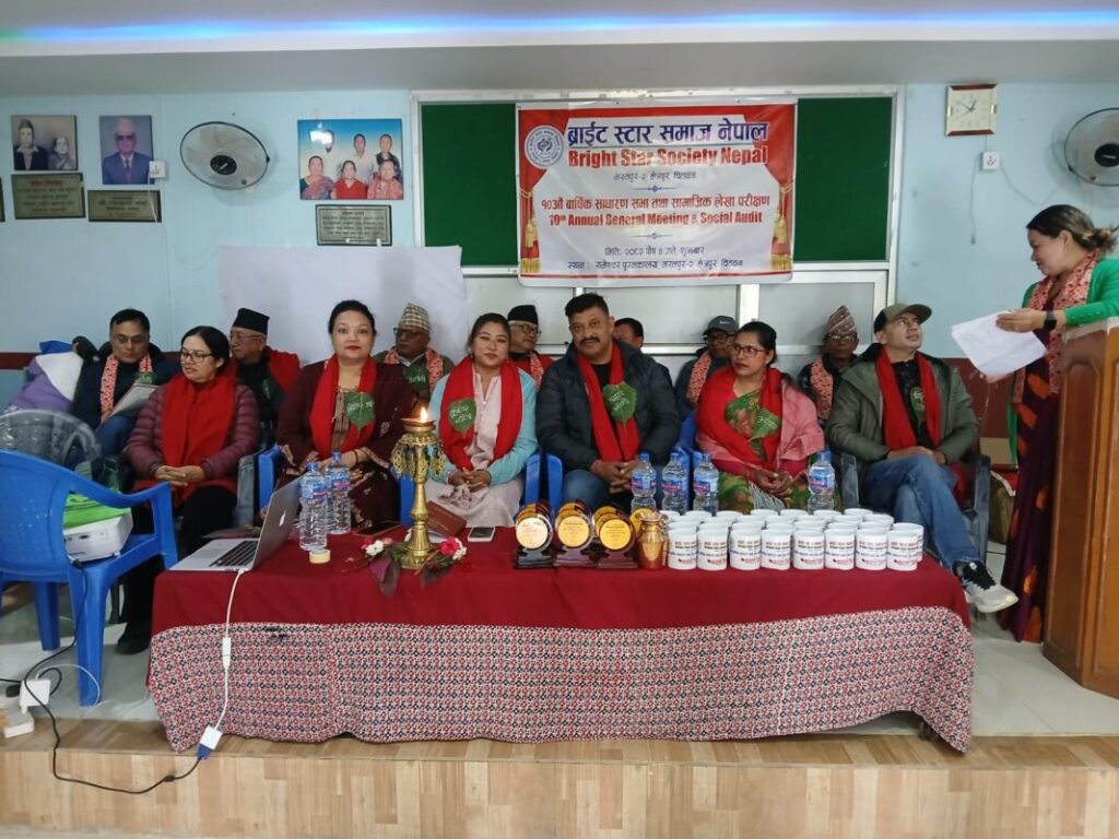 चितवन । भरतपुर महानगरपालिका वडा नम्बर २ क्षेत्रपुरस्थित ब्राइट स्टार समाज नेपाल को दशौँ वार्षिक साधारण सभा तथा सामाजिक लेखा परीक्षण कार्यक्रम सम्पन्न भएको छ। कार्यक्रम वडा नम्बर २ कै क्षेत्रपुरमा रहेको रामेश्वर पुस्तकालयको भवन मा आयोजना गरिएको थियो।