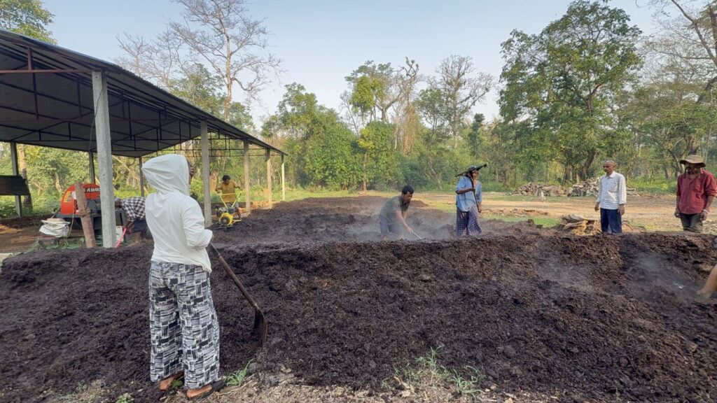 सामुदायिक वनले वृक्षारोपणका क्रममा सफाइ गर्दा निस्कने पातपतिङ्गर र अनावश्यक झाडीलाई कच्चा पदार्थको रूपमा प्रयोग गरेको छ। हाल परीक्षण स्वरूप वनको करिब साढे २८ हेक्टर क्षेत्रफलबाट संकलन गरिएको वनस्पतिबाट मल बनाउने काम भइरहेको छ।