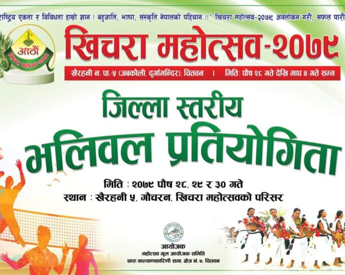 चितवन, २४ पुस । यही पुस २५ गतेदेखि सञ्चालन हुने चितवन महोत्सवको तयारी पूरा भएको छ । नारायणगढस्थित नारायणी नदी किनारको प्रदर्शनी मैदानमा १४औँ संस्करणको ‘चितवन महोत्सव–२०७९’ हुँदै छ ।पुरा पढ्नुहोस्