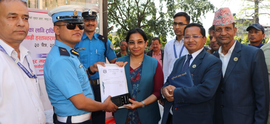 भरतपुर महानगरपालिकाद्धारा ट्राफिक सामाग्री हस्तान्तरण