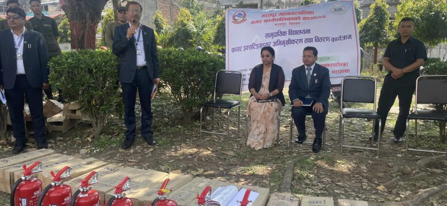 भरतपुर महानगरपालिकाभित्रका एक सय १४ विद्यालयलाई ‘अग्नि शमनयन्त्र’ वितरण