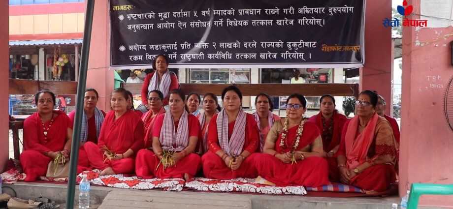 भ्रष्टचारका मुद्धा दर्ता संशोधनगर्न ल्याइएको विद्येयकको विरोधमा गैडाकोटमा रिले अनसन सुरु