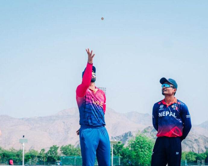 काठमाडौं । आईसीसी टी–२० विश्वकप एसिया–प्यासिफिक क्षेत्रीय फाइनलको सुपर–६ चरणमा नेपालले युएईविरुद्ध पहिले ब्याटिङ गर्ने भएको छ। आइतबार ओमानको अल अमेरातमा भएको टसमा नेपाली कप्तान रोहितकुमार पौडेलले ब्याटिङ रोजेका हुन्।पुरा पढ्नुहोस्